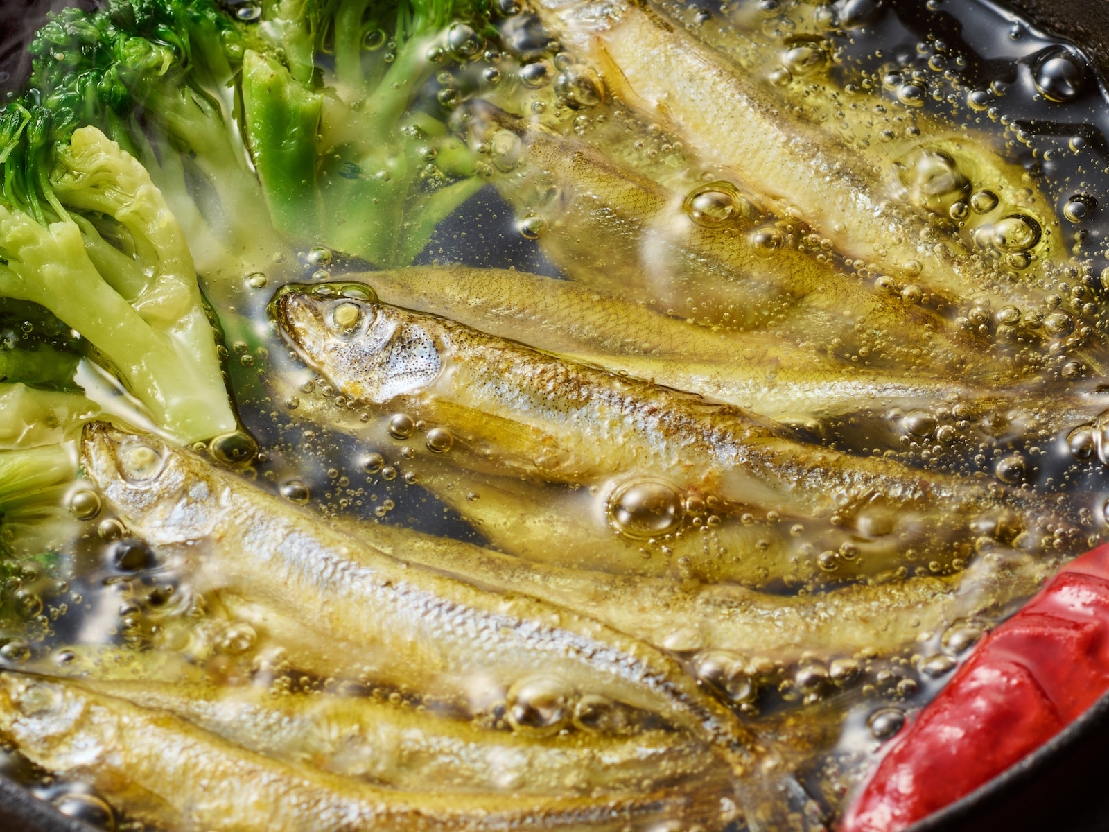具材は青森県の十和田湖および小川原湖で獲れた新鮮なわかさぎを使用。青森産にんにくと漁獲量日本一の青森県産わかさぎで作った”タパス”をお楽しみください。