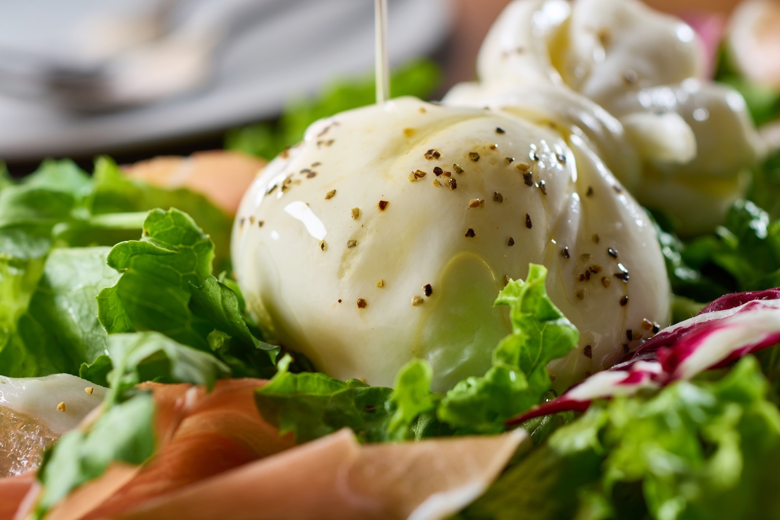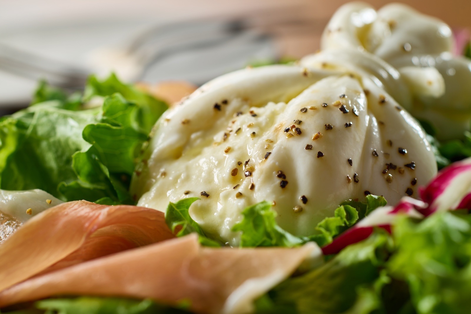 チーズ職人手包みチーズ。巾着状モッツァレラの中にさけるチーズ&生クリームが入った究極のフレッシュチーズ